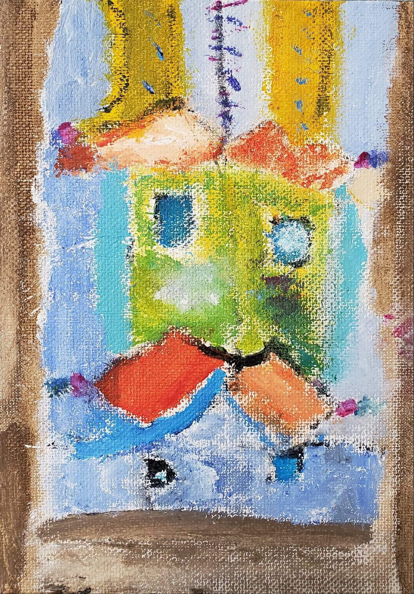 sun'll come out tomorrow, 2019, acrylic on canvas, five by five inches.