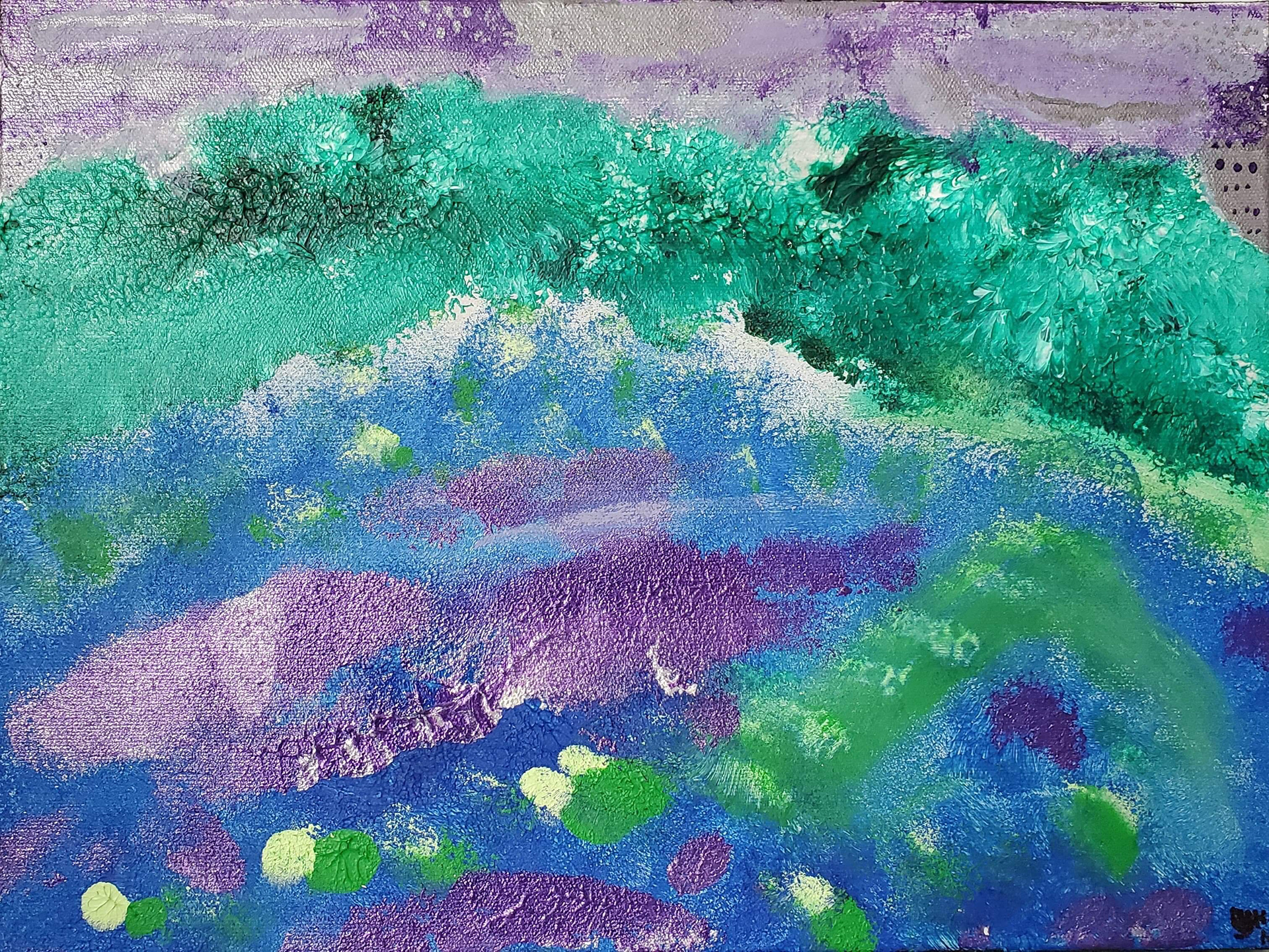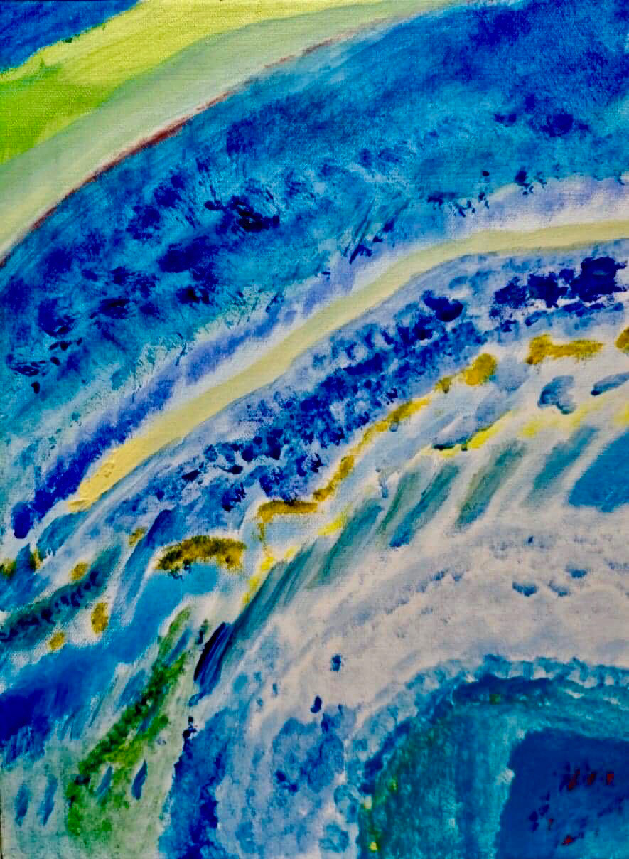 And feel the way the water flows, 2019, acrylic on canvas, eleven by fourteen inches.