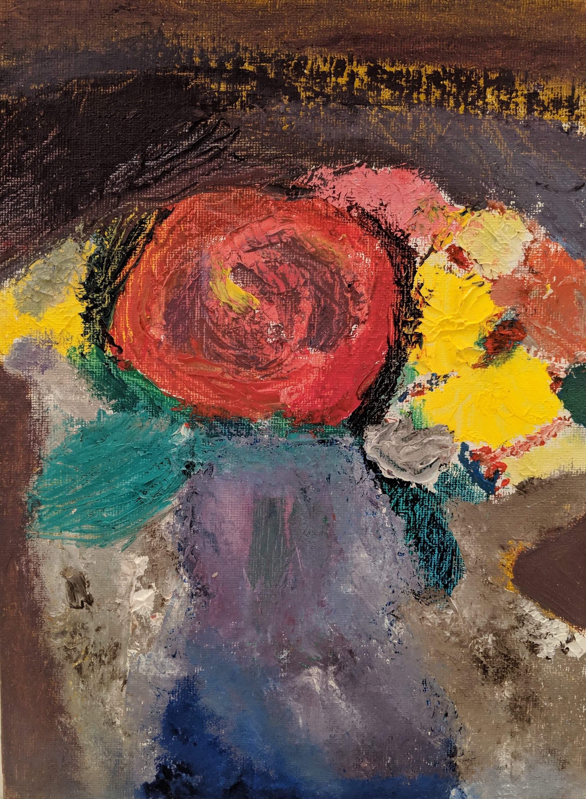 still life of flowers in a vase, 2019, oil on canvas, twelve by sixteen inches.
