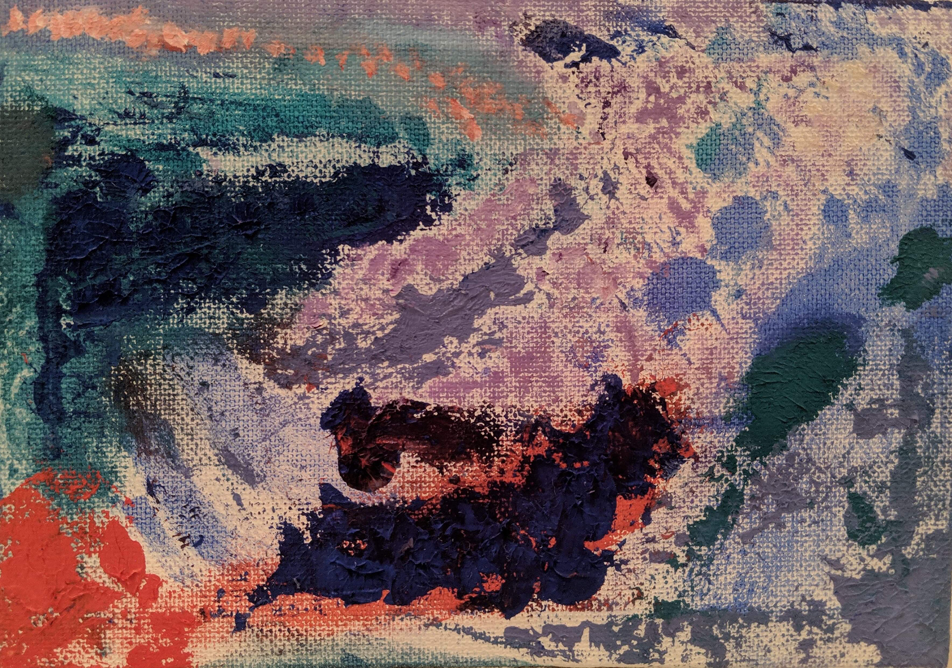 it's not on any chart, 2019, oil on canvas, five by seven inches.
